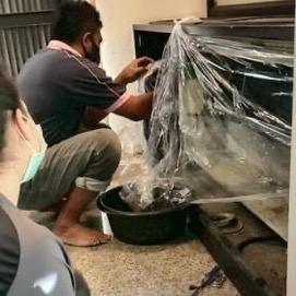 ใช้ปั้มน้ำแรงดันสูงฉีดอัดล้างท่อน้ำทิ้ง และชิ้นส่วนต่างๆ อย่างละเอียด