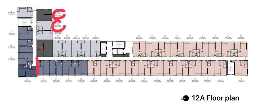 **ห้องเลขที่ 1331 เนื้อที่ 31 ตรม. ห้องมุม 1 Bedroom