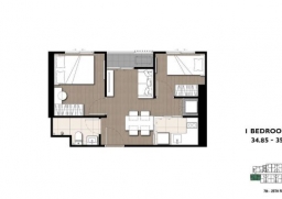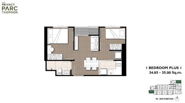 ขนาด 35 ตร.ม. 1 ห้องนอน 1 ห้องน้ำ 1 ห้องอเนกประสงค์ (1 Bed Plus) ห้องอเนกประสงค์วางเตียง 3.5 ฟุตได้