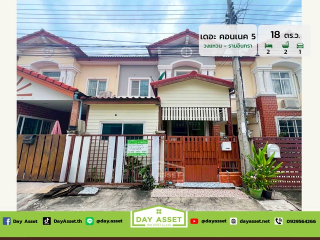 เดย์ อสังหาขายทาวน์เฮาส์ 2 ชั้น หมู่บ้านเดอะ คอนเนค 5 วงแหวน - รามอินทรา : The Connect 5 Wongwaen - Ramintra บนทำเลแห่งการเดินทาง ใกล้ทางด่วนรามอินทรา-อาจณรงค์ เนื้อที่ 18 ตร.ว. ขายเพียง 2,000,000 ล้านบาท