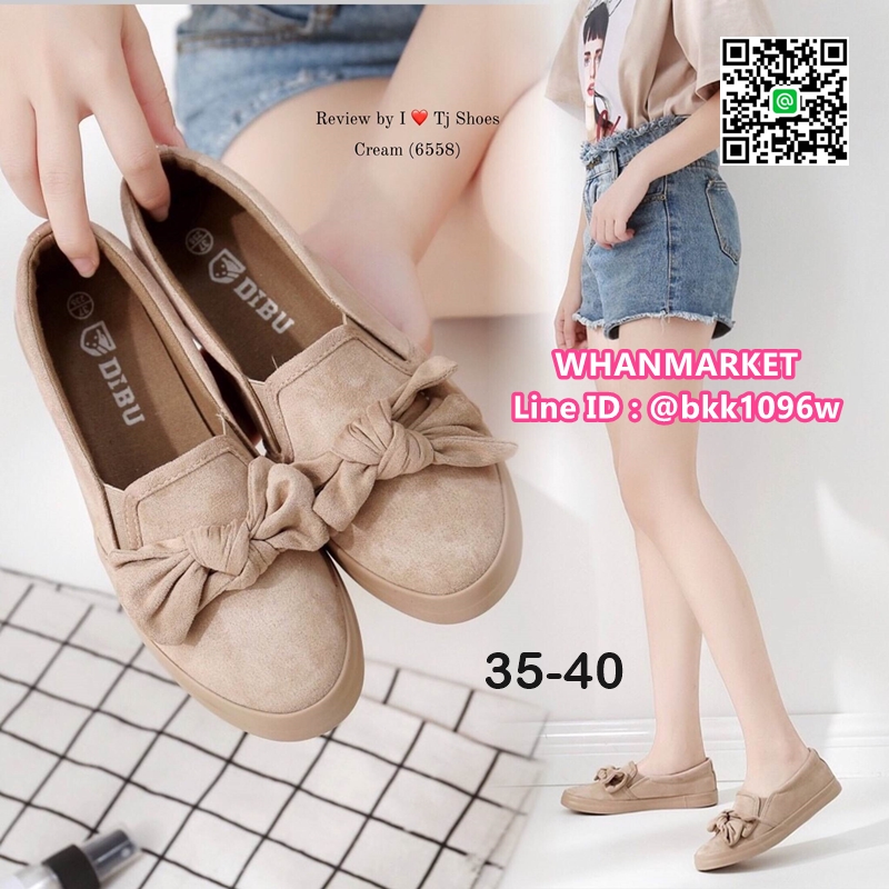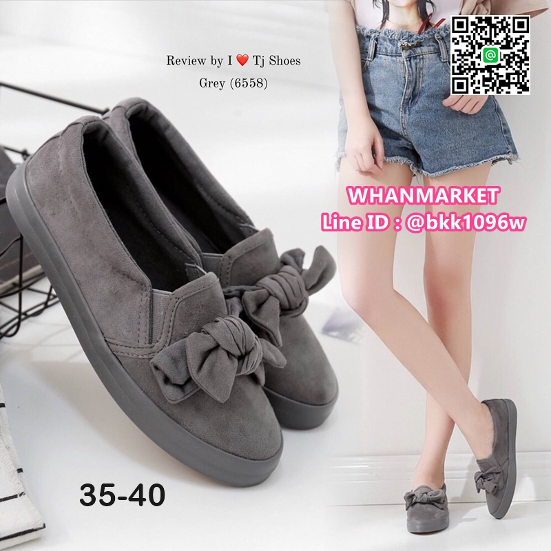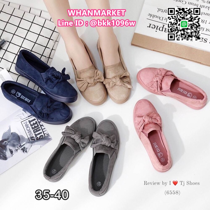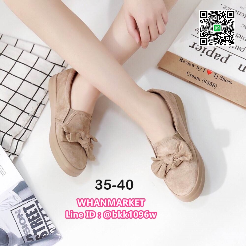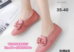 WhanMarketรองเท้าผ้าใบนำเข้า ทรง Slip On สุคคิ้วท์ ประดับโบว์น่ารักๆ พื้นยางอย่างดี ใส่นิ่มเดินสบายมาก จับแมทกับชุดอะไรก็เกร๋ รีบสั่งด่วนๆ ช้าหมดนร้า (สูง1นิ้ว)
