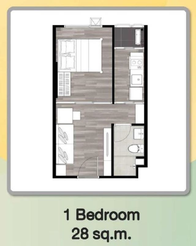 ห้องเลขที่ B 825 1 bedroom ขนาด 28.05 ตร.ม. พร้อมครัวปิดติดระเบียง