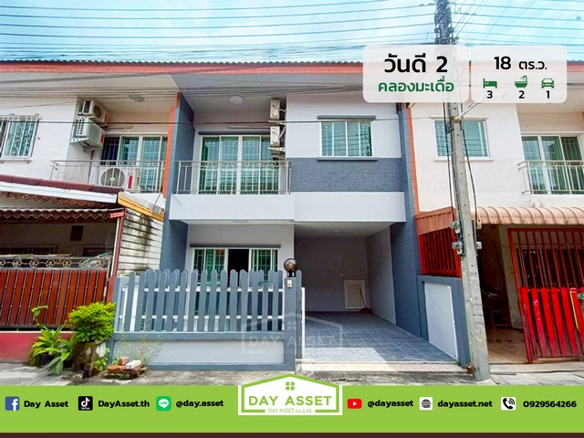 เดย์ อสังหาขายทาวน์เฮาส์ 2 ชั้น หมู่บ้านวันดี 2 คลองมะเดื่อ กระทุ่มแบน : Wandee 2 Khlong Maduea, Krathumbaen การสัญจรสะดวกสบาย ใกล้เมืองมหาชัย-กระทุ่มแบน เนื้อที 18 ตร.ว. ขายเพียง 1,950,000 ล้านบาท