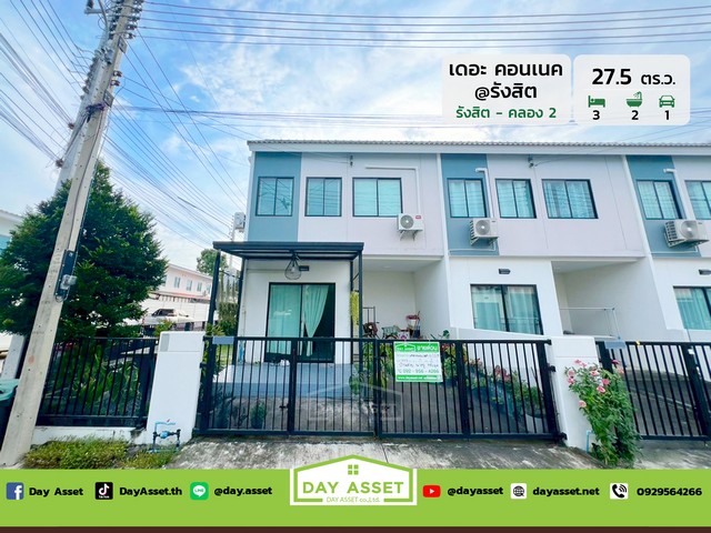 เดย์ อสังหาขายทาวน์เฮาส์ 2 ชั้น หมู่บ้านเดอะ คอนเนค @ รังสิต-คลอง 2 :T he Connect @ Rangsit-Klong 2 เดินทางสะดวกสบาย สามารถเข้า-ออก ได้หลายเส้นทาง ล้อมรอบไปด้วยแหล่งอำนวยความสะดวก เนื้อที่ 27.5 ตร.ว. ขายเพียง 2,750,000 ล้านบาท