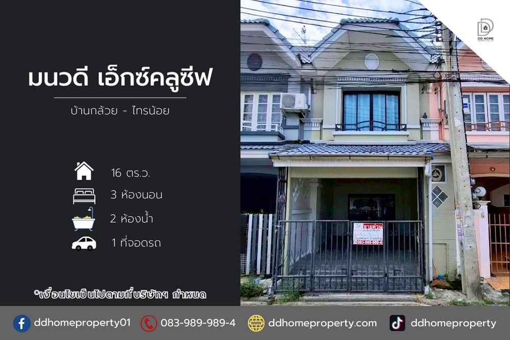 ดีดี โฮม พร็อพเพอร์ตี้ ดีดี โฮม พร็อพเพอร์ตี้ขายหมู่บ้านมนวดีเอ็กซ์คลูซีฟ บ้านกล้วยไทรน้อย (DD002155)