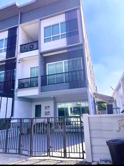 For sale/rent, luxury 3-story townhome, corner unit, on main road, 30 sq m, Wat Khubon School 600 m., Ram Intra-Ring Road, 350 sq m., 29,999-34,999 B-M., quiet, private, 4 bedrooms, 3 bathrooms, selling for 4.49 million baht. Phraya Suren Floating Market 1.9 km., Sammakorn, easy to find food, easy to travel, Kanchanaphisek-Khubon Road, MRT Khubon 2.7 km.
