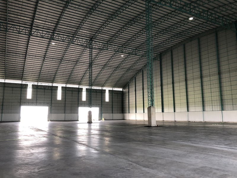 โกดังพื้นที่ 9000 ตารางเมตร ขนาดกว้าง 90 เมตร ยาว 100 เมตร สูง 18 ถึง 30 เมตร สามารถแบ่งเช่าได้ตามความต้องการ 2400 ตารางเมตร 3000 ตารางเมตร หรือ 3600 ตารางเมตร
