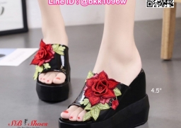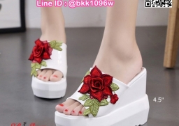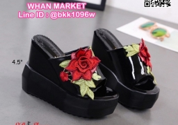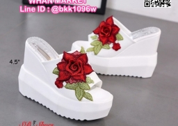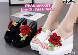 WhanMarketรองเท้าแตะลำลอง ส้นเตารีด นำเข้าสไตล์เกาหลี ส้นสูง4.5นิ้ว เสริมหน้า1.5นิ้ว ตกแต่งด้วยลายปักดอกกุหลาบนูน งานสวยเป๊ะเว่อร์ สวมง่ายใส่สบาย น้ำหนักเบา ไอเท็มที่ไม่ควรพลาดค่ะ สินค้ามีจำกัดนะคะ