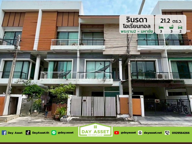 เดย์ อสังหาขายทาวน์โฮม 3 ชั้น หมู่บ้านรินรดา โอเรียนทอล ถนนสหกรณ์ สมุทรสาคร : Rinrada Oriental Village Sahakorn Road, Samut Sakhon ทำเลดี ใกล้แหล่งอำนวยความสะดวกครบครัน เนื้อที่ 21.2 ตร.ว. ขายเพียง 2,390,000 ล้านบาท