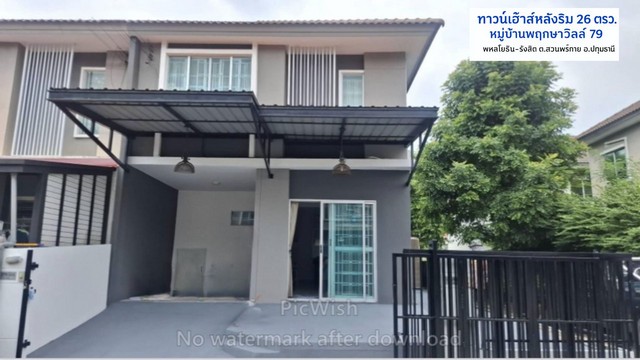 วรรณเพ็ญ สุขเกษมขายถูกกว่าราคาประเมินทาวน์เฮ้าส์ 2 ชั้น renovate สวย หลังริม 26 ตรว.ทำเลดีมาก หมู่บ้านพฤกษาวิลล์79ใกล้สตูริโอเวิล์คพอยท์ พหลโยธิน-รังสิต ติดถนนเลียบคลองเปรมประชากร มีรถสองแถวผ่านหน้าหมู่บ้าน