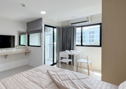 พร้อมเฟอร์นิเจอร์ครบชุด (เตียง + ฟูก, ทีวี, ตู้เย็น, โต๊ะทานข้าว + เก้าอี้, โต๊ะเครื่องแป้ง)