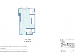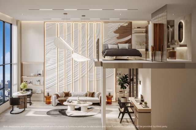 **ห้อง type vertiplex 26 ตารางเมตร + ชั้นลอย 12.5 ตารางเมตร รวมเนื้อที่ 38.5 ตารางเมตร ชั้น 22 ห้องเลขที่ 2201