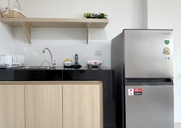 พร้อมเฟอร์นิเจอร์ครบชุด (เตียง + ฟูก, ทีวี, ตู้เย็น, โต๊ะทานข้าว + เก้าอี้, โต๊ะเครื่องแป้ง)