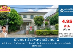 อดิเทพ ภระมรทัตขายบ้านเดี่ยว มัณฑนา วัชรพล-รามอินทรา 1 ขนาด 60 ตรว. 3 ห้องนอน 2 ห้องน้ำ ทำเลทองใจกลางวัชรพล ใกล้ทางด่วน เชื่อมต่อทุกการเดินทาง
