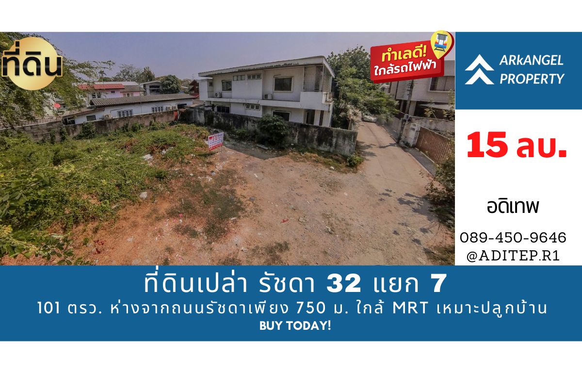 - ที่ดินเปล่า ถมแล้ว ขนาด 101 ตร.ว. รัชดา 32 แยก 7-1