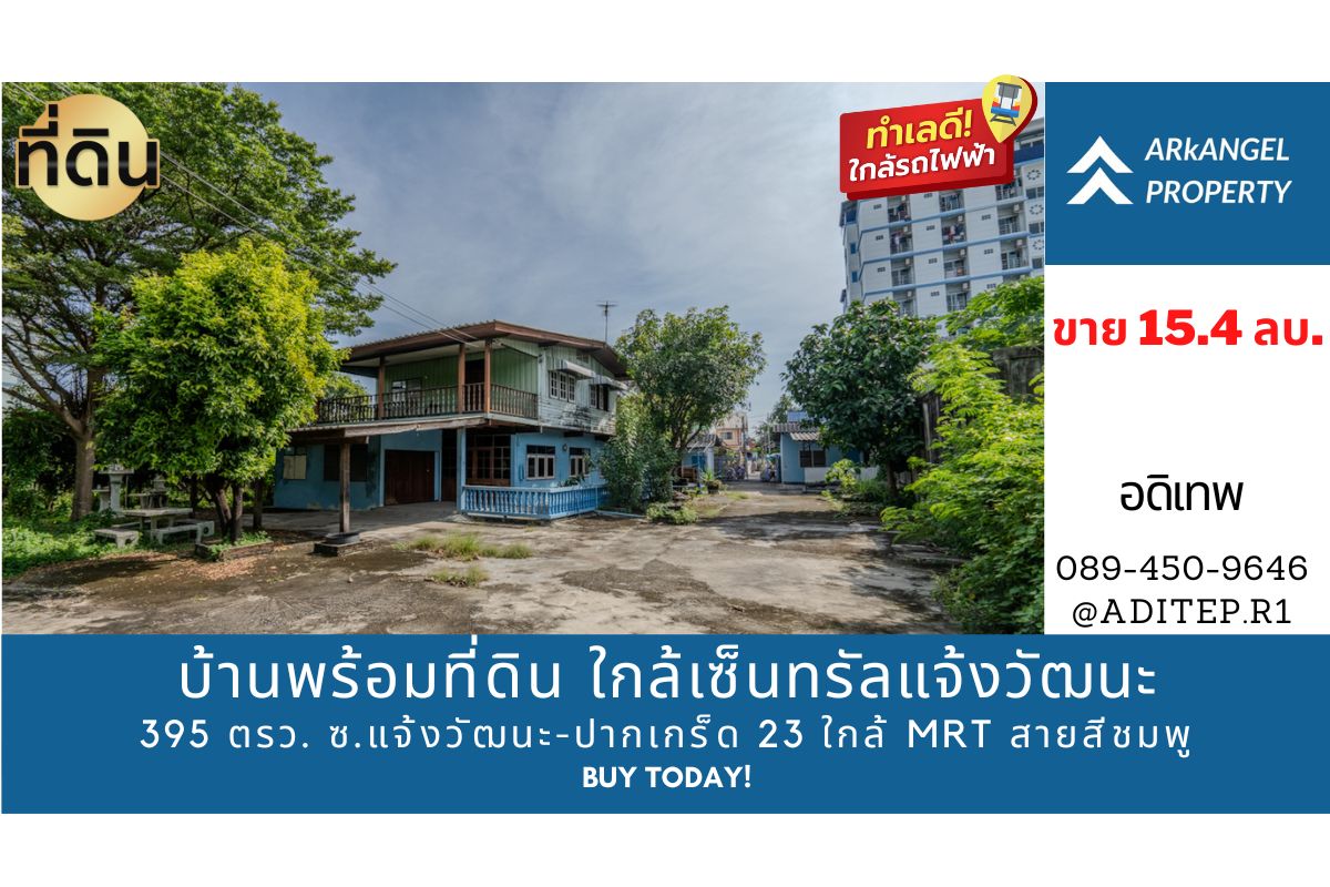 อดิเทพ ภระมรทัตขายพร้อมผู้เช่าระยะยาว ที่ดินพร้อมสิ่งปลูกสร้าง 395 ตรว. ตรงข้ามเซ็นทรัลแจ้งวัฒนะ ในซอยแจ้งวัฒนะ-ปากเกร็ด 23 ใกล้สถานีรถไฟฟ้าสายสีชมพู เข้าซอย 650 เมตร