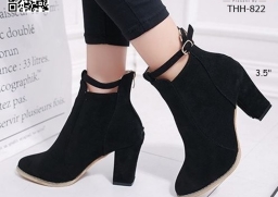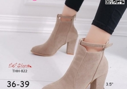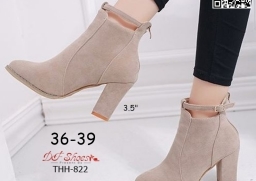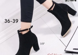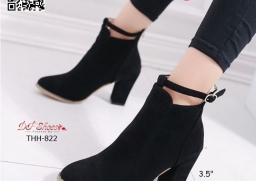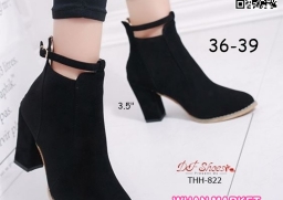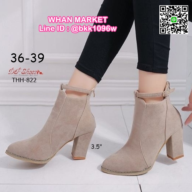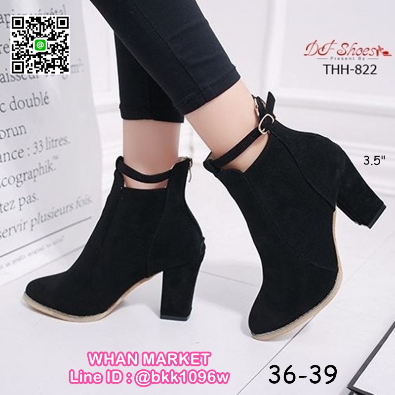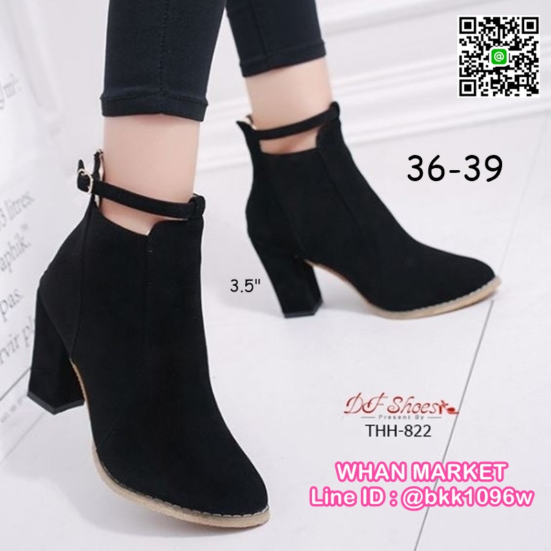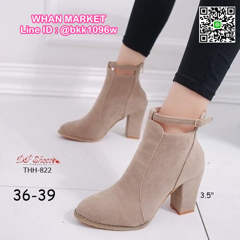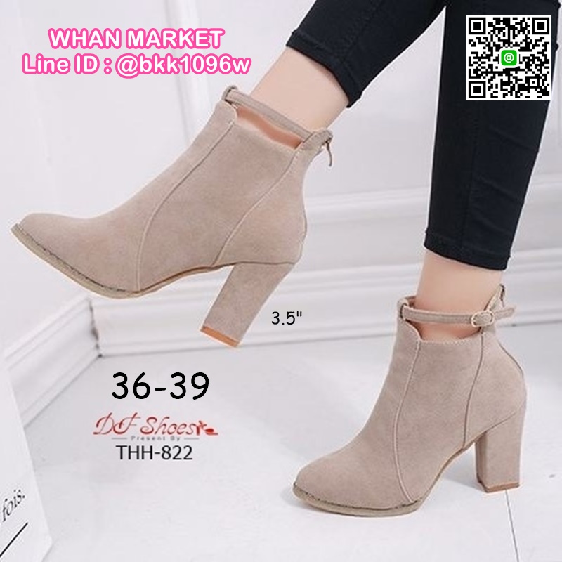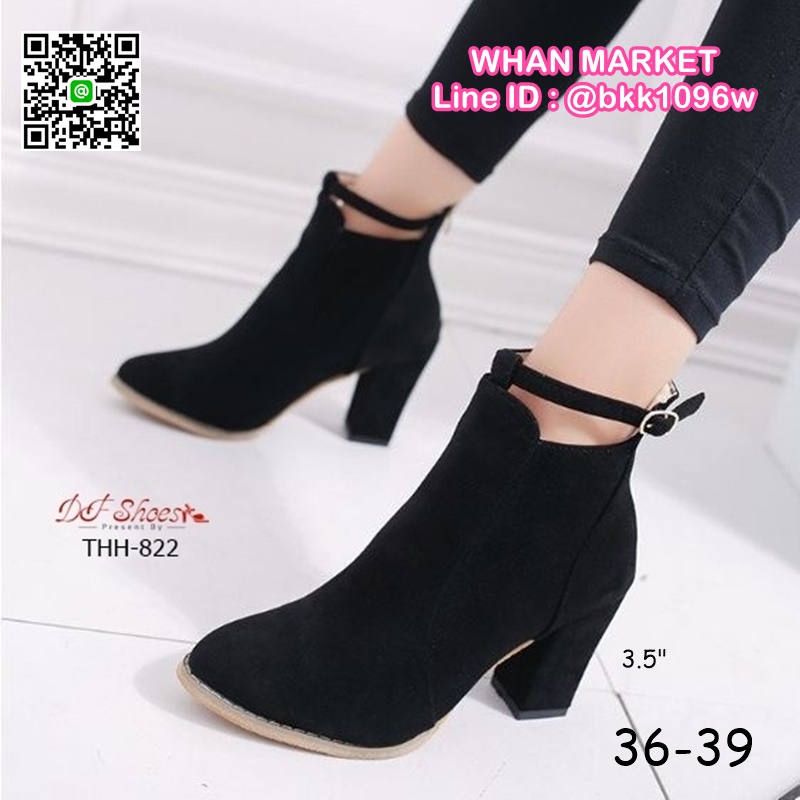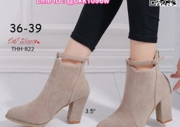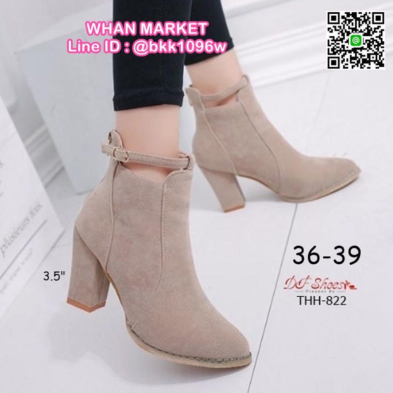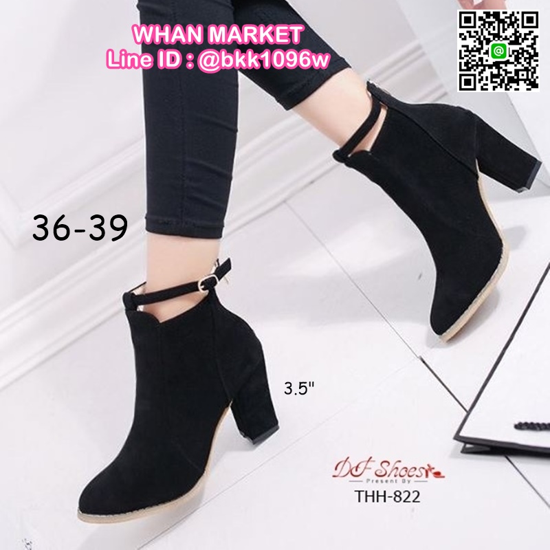 WhanMarketรองเท้าบูทหุ้มข้อ ส้นสูง 3.5 นิ้ว หัวแหลม งานนำเข้า วัสดุผ้าสักหลาด ส้นตัน มีซิปหลัง สวมใส่ง่าย ดีเทลสายรัดข้อเท้า ดูดีจ้า