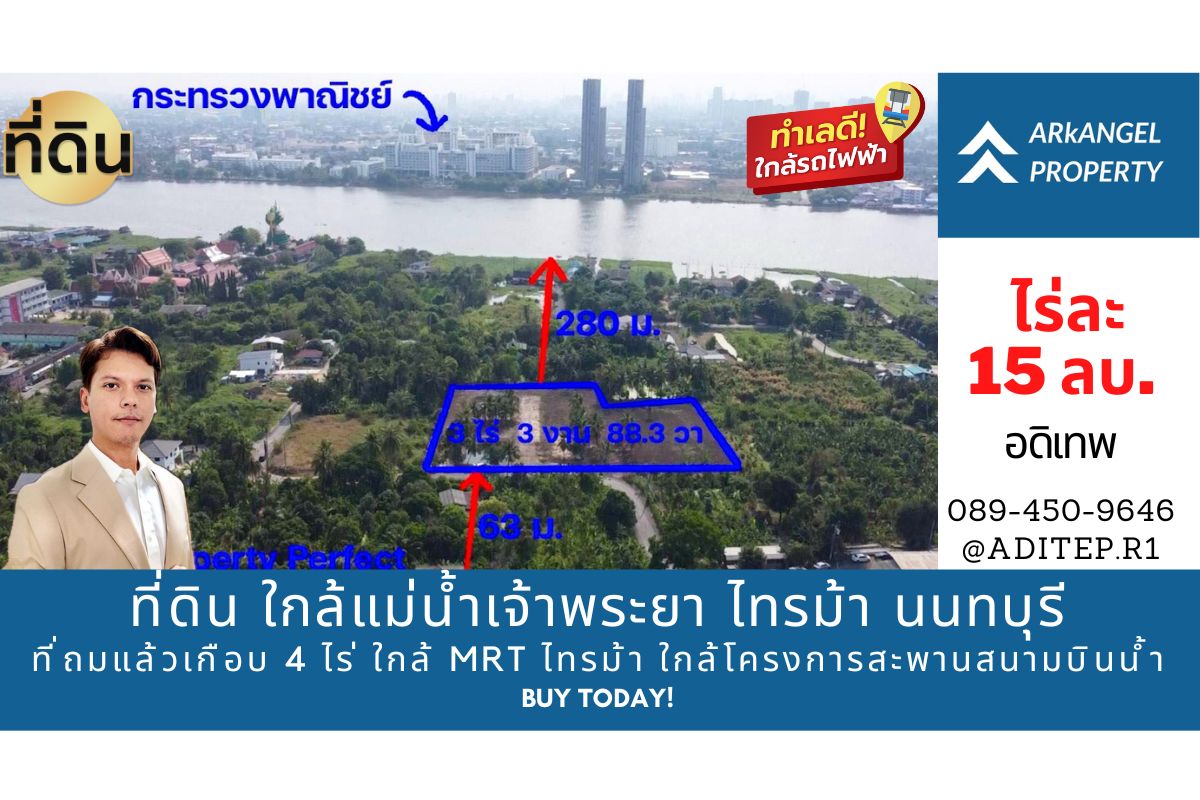 อดิเทพ ภระมรทัตขายที่ดิน ใกล้แม่น้ําเจ้าพระยา ซ.ไทรม้า 5 นนทบุรี ที่ถมแล้วเกือบ 4 ไร่ ใกล้รถไฟฟ้า ใกล้โครงการสะพานสนามบินน้ำตัดเชื่อมไปออกถนนราชพฤกษ์ในอนาคต