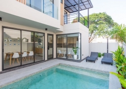 บ้านที่ออกแบบมาอย่างดีเหล่านี้มีสระว่ายน้ำเกลือคลอรีนขนาด 8x4 เมตร ที่กว้างขวางมาก การออกแบบการพัฒนาได้รับการพิจารณาอย่างรอบคอบเพื่อให้มั่นใจถึงความเป็นส่วนตัวสูงสุดสำหรับบริเวณสระว่ายน้ำ