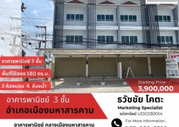 ขายด่วน อาคารพาณิชย์ 3 ชั้น 1 คูหา ทำเลทอง กลางเมืองมหาสารคาม (โครงการเพิ่มทรัพย์)