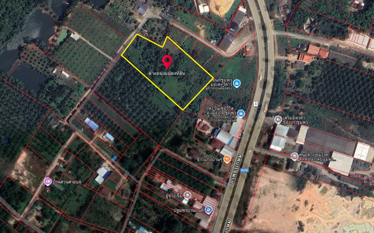 ขายที่ดินเปล่า 7 ไร่ เมืองชุมพร ใกล้ถนนเพชรเกษม (ทางหลวงหมายเลข 4)