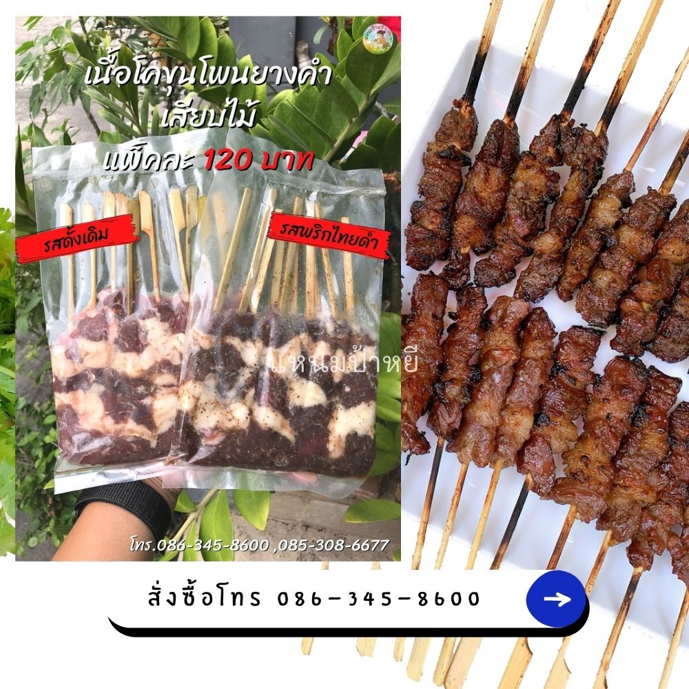 เนื้อโคขุนโพนยางคำเสียบไม้ สนใจสั่งได้นะจ๊ะ