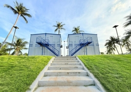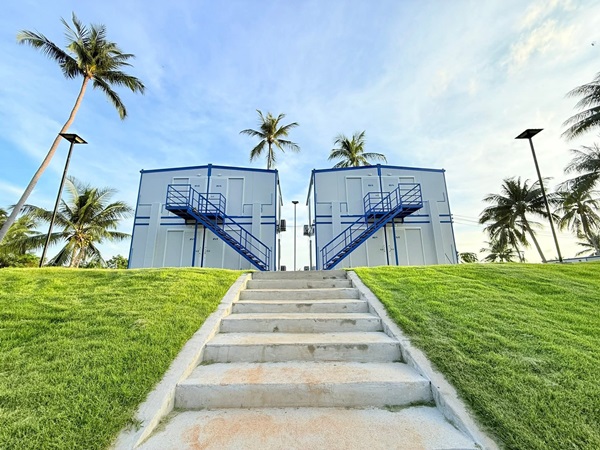 ห้องพักคอนเทนเนอร์สไตล์ซานโตรินีที่ทันสมัย
