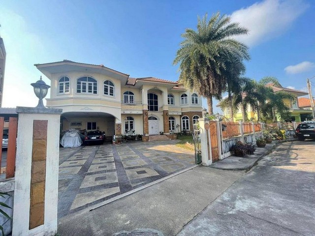 มีโรงรถขนาดใหญ่ มีสวนหย่อมและสนามบาสอยู่หน้าบ้าน