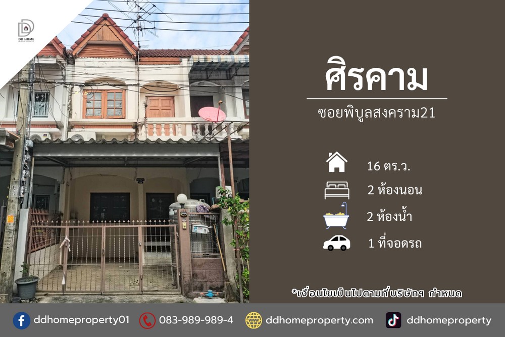 ดีดี โฮม พร็อพเพอร์ตี้ ดีดี โฮม พร็อพเพอร์ตี้ขายทาวน์เฮ้าส์ หมู่บ้านศิรคาม ซอยพิบูลสงคราม21 (DD002264)