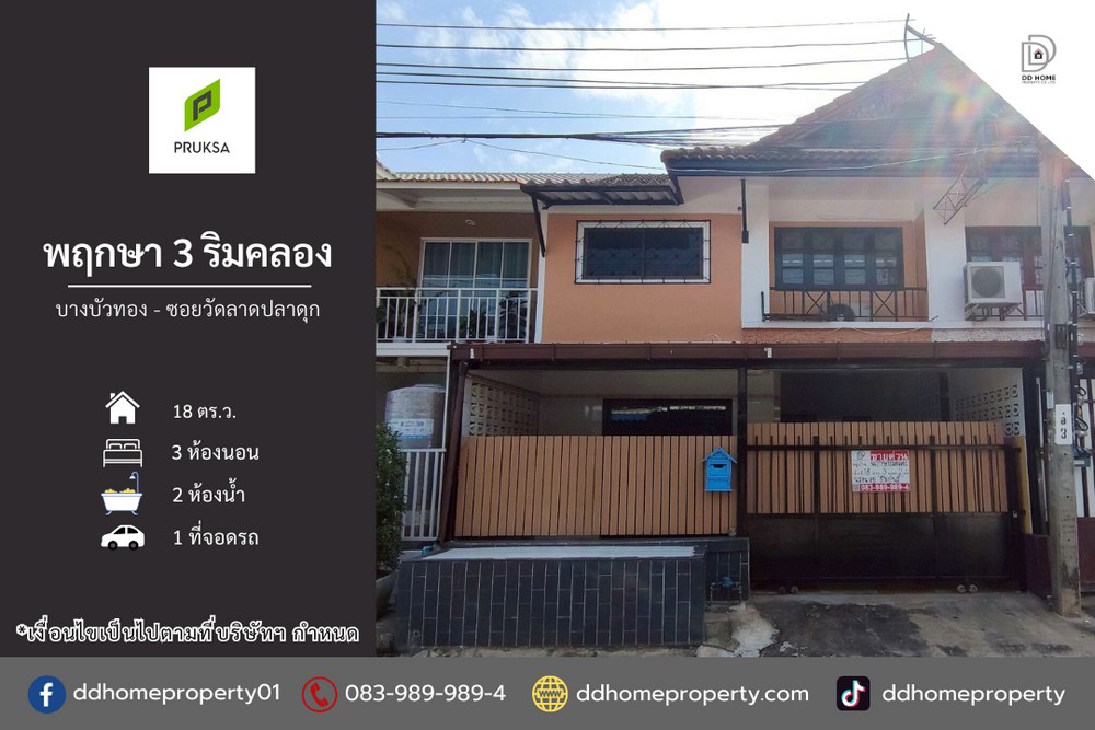ดีดี โฮม พร็อพเพอร์ตี้ ดีดี โฮม พร็อพเพอร์ตี้ขายหมู่บ้านพฤกษา3ริมคลอง บางบัวทอง ซอยวัดลาดปลาดุก (DD002280)