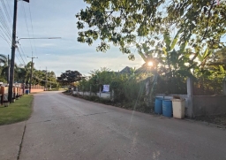 ติดถนนสาธารณะ 2 ด้าน แปลงมุม ถมแล้วสูงกว่าถนน ล้อมรั้วชัดเจน