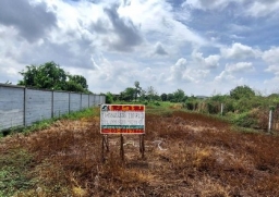 ที่ดินเปล่า เนื้อที่ 110 ตารางวา เป็นที่ดินแปลงมุม ทำการถมที่แล้ว หน้ากว้างประมาณ 13 เมตร ลึกประมาณ 34 เมตร
