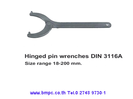 Hinged hook wrench with pin DIN 1816, 12-270 mm.