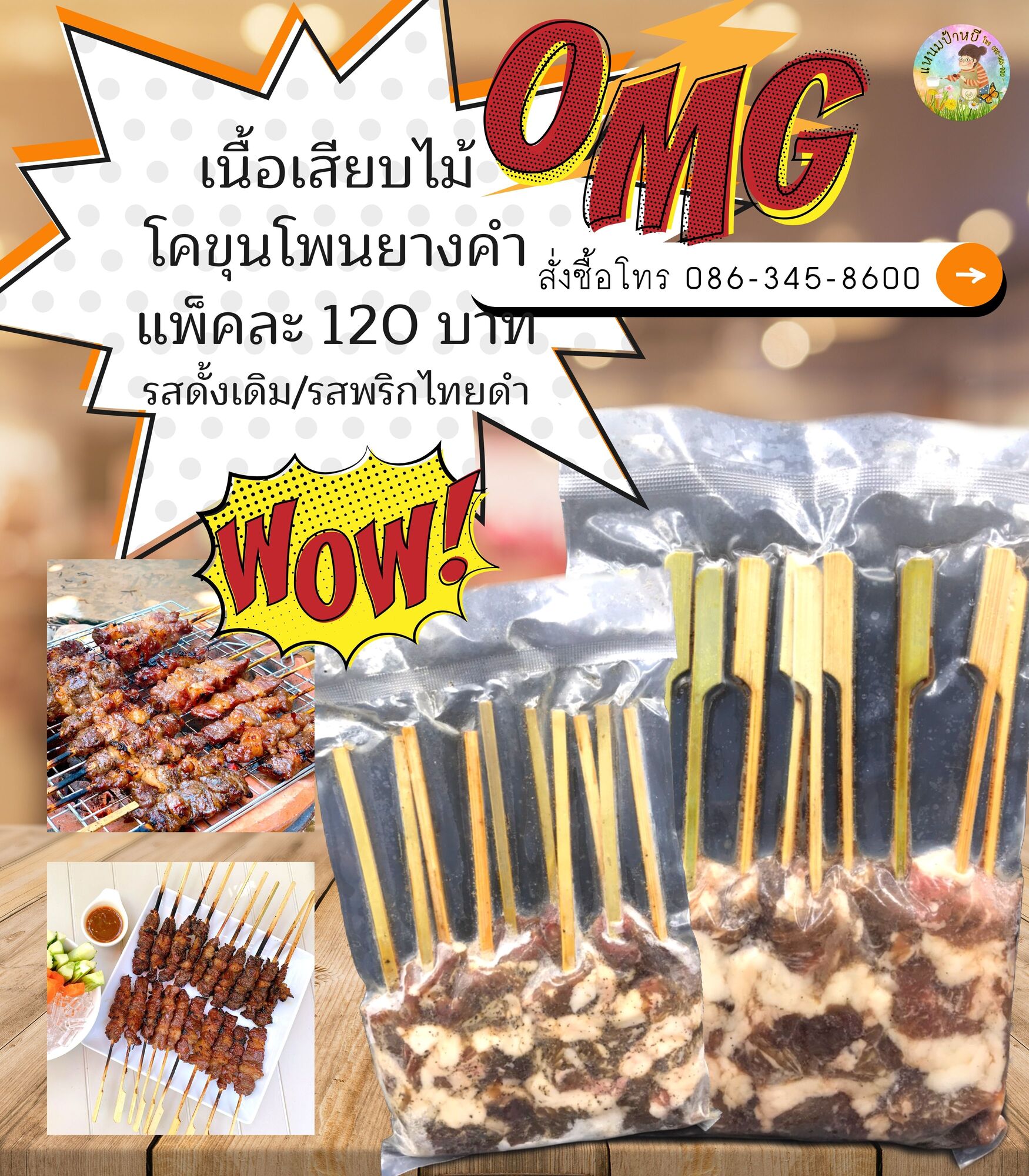 เนื้อโคขุนโพนยางคำเสียบไม้ ว้าวว้าว สนใจสั่งได้ค่ะ