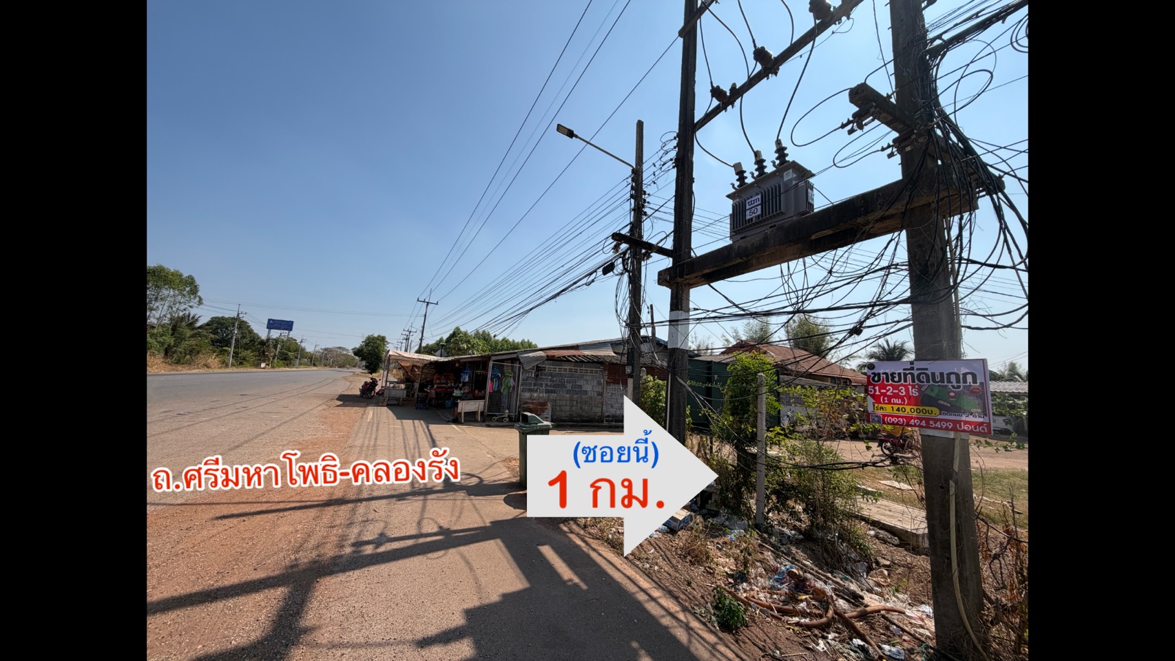 ✓ ถนนศรีมหาโพธิ–คลองรัง (ทางหลวงหมายเลข 3079) : 9 km.