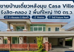 บ้านเดี่ยว **Casa Ville รังสิต–คลอง 2** หลังนี้ คือหนึ่งในทำเลที่ดีที่สุดในโซนรังสิต ด้วยขนาดที่ดินถึง **110.7 ตารางวา** พร้อมฟังก์ชันจัดเต็ม **5 ห้องนอน 5 ห้องน้ำ** ตั้งอยู่ในตำแหน่ง “**บ้านหลังมุม + บ้านติดสวน**” ให้ความเป็นส่วนตัวสูงและพื้นที่ใช้สอยที่กว้างขวางกว่าบ้านทั่วไป