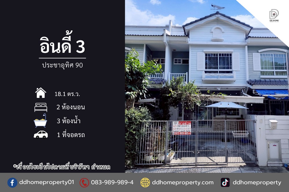 ดีดี โฮม พร็อพเพอร์ตี้ ดีดี โฮม พร็อพเพอร์ตี้ขายทาวน์เฮ้าส์ หมู่บ้านอินดี้3 ประชาอุทิศ90 (DD002307)