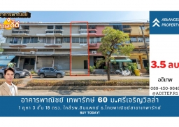 ขายอาคารพาณิชย์ เทพารักษ์ 60 ม.ศรีเจริญวิลล่า ขนาด 1 คูหา 3 ชั้นครึ่ง 18 ตรว. ใกล้รพ.สินแพ