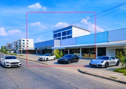 Ready to operate auto service center 4 commercial buildings Makro Pathum Thani 700m. with 10beds 4baths near main road and community within 1 km2. Large land plot suitable for auto service hub warehouse or showroom. Land size 340 sq.w. with usable area over 2,360 sq.m. 249,999 baht per month, or a sale price of 44.9 million baht.
