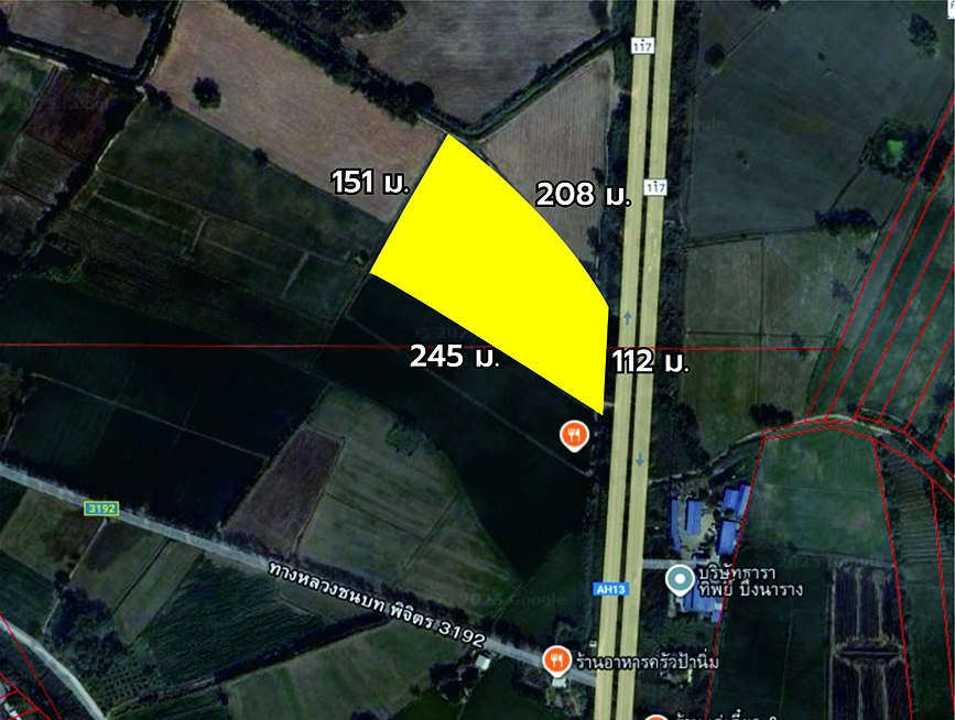 - หน้ากว้างติดถนนหมายเลข 117 (นครสวรรค์-พิจิตร) 172 เมตร ลึก 245 เมตร