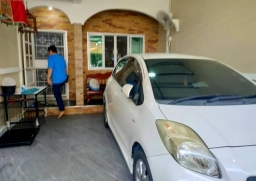 ลักษณะบ้าน : ทาวน์เฮ้าส์ 2 ชั้น มีระเบียง ต่อเติมห้องครัวด้านหลัง ติดตั้งมุ้งลวด