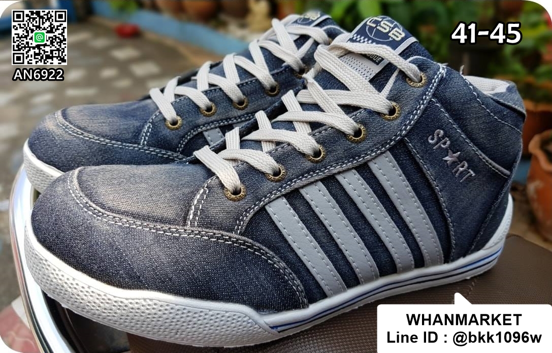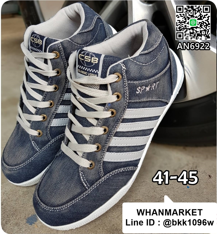 WhanMarketรองเท้าผ้าใบยีนส์ ทรงหุ้มข้อ งานแฟชั่นผู้ชาย วัสดุผ้ายีนส์+หนังPUคุณภาพดี มีเชือกผูกปรับกระชับได้ ใส่เบาสบาย เหมาะสมในทุกโอกาส จะใส่เที่ยว ใส่ทำงานหรือออกงานก็ได้เลยค่ะ สินค้ามีจำนวนจำกัด รีบสั่งด่วนๆค่ะ