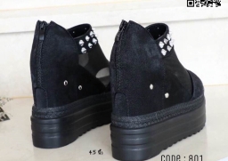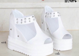 WhanMarketรองเท้าส้นเตารีด เสริมส้นสูง 4.5 นิ้ว สูงหน้าเกือบ 2 นิ้ว พื้นพียู วัสดุผ้า+หนังPU น้ำหนักเบา เปิดหน้า มีซิปหลัง ใส่ง่าย ใส่ปุ๊บสูงปั๊บ แฟชั่นนำเข้าสไตล์เกาหลี สาวๆที่ชอบสไตล์นี้ ห้ามพลาดเลยนะคะ