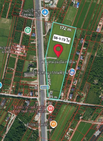 ขายที่ดินลาดหลุมแก้ว 56-1-73 ไร่ ลาดหลุมแก้ว ติดถนน 2 ด้าน หน้ากว้าง 400 ม. เหมาะทำคลังสินค้าและโรงงาน