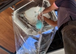 ใช้ปั้มน้ำแรงดันสูงฉีดอัดล้างท่อน้ำทิ้ง และชิ้นส่วนต่างๆ อย่างละเอียด