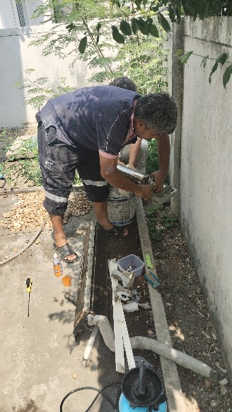 ใช้ปั้มน้ำแรงดันสูงฉีดอัดล้างท่อน้ำทิ้ง และชิ้นส่วนต่างๆ อย่างละเอียด