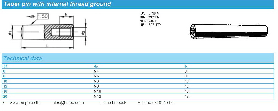 Taper pin with internal thread