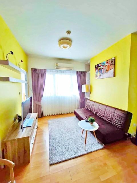 คอนโดห้องขนาด 35 ตร.ม. ชั้น 4 จัดสรรพื้นที่ลงตัว 1 ห้องนอน 1 ห้องรับแขก 1 ครัว และ 1 ห้องน้ำ เฟอร์นิเจอร์และเครื่องใช้ไฟฟ้าครบครัน