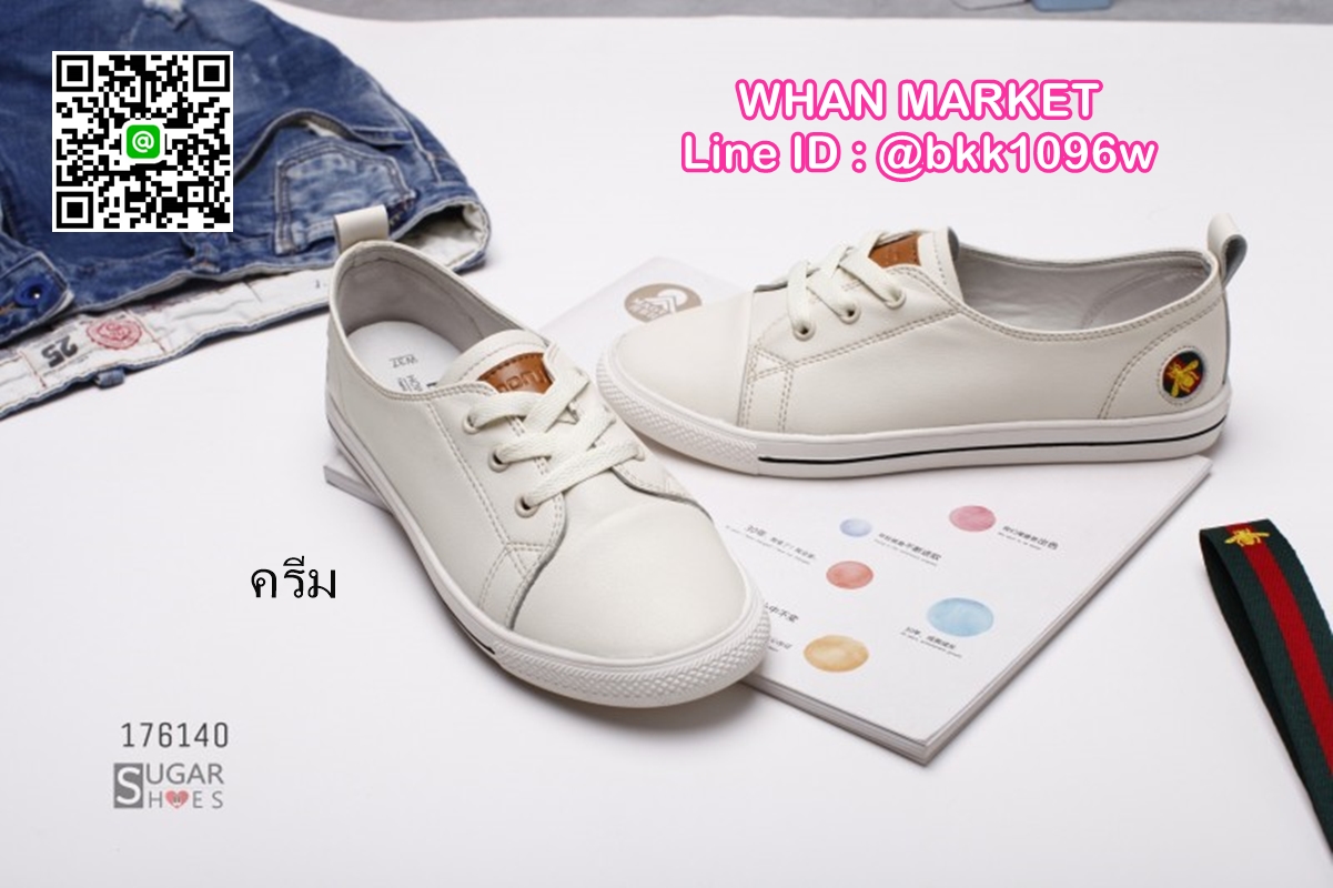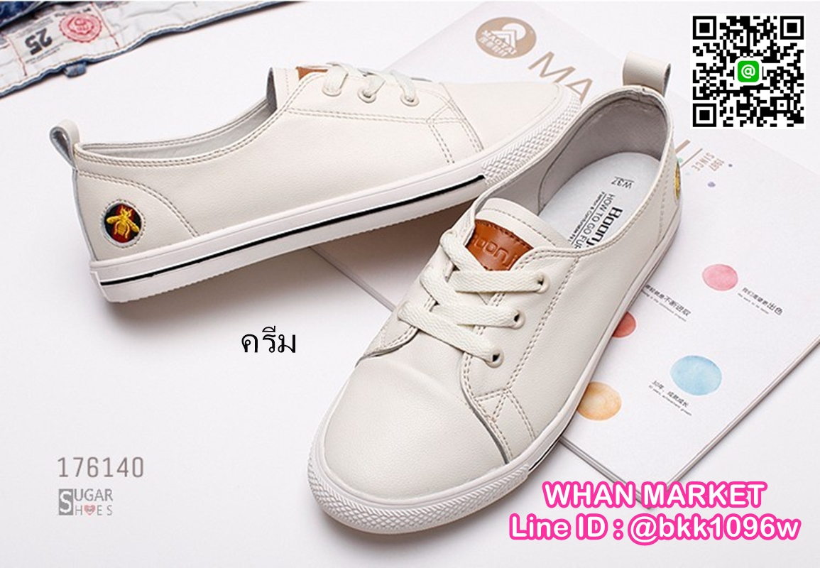 WhanMarketรองเท้าผ้าใบ ทรง sneaker ทำจากหนังวัวแท้ มีปักลายผึ้งด้านนอก สวมใส่ง่าย มีเชือกผูกปรับระดับ หนังนิ่ม ใส่สบาย น้ำหนักเบา พื้นสูง 1 นิ้ว พื้นยางอย่างดี ใส่แล้วดูเท่ห์สุดๆ ใส่แต่งตัวได้หลายแนว เป็นอีกหนึ่งไอเท็มที่ไม่มีไม่ได้แล้ว สั่งกันได้เลยค่ะ