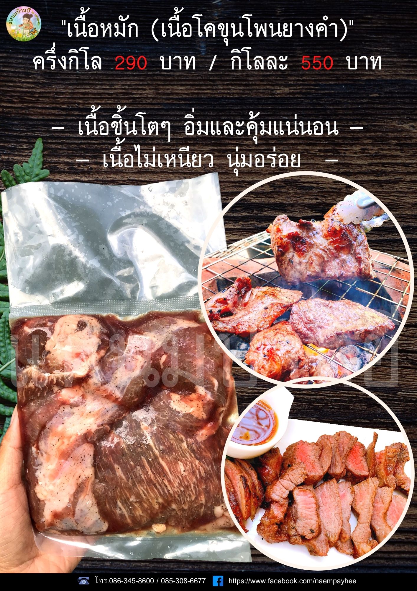 • เนื้อหมักปรุงรสโพนยางคำ เนื้อชิ้นโตๆ อิ่มและคุ้มแน่นอน